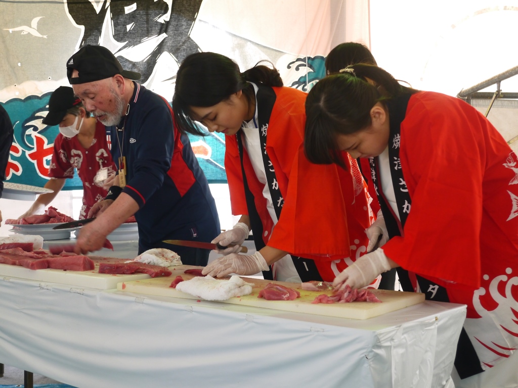 焼津さかなセンター祭りでは、女性がまぐろを解体するのは初挑戦で会場はいつも以上に盛り上がりました!
