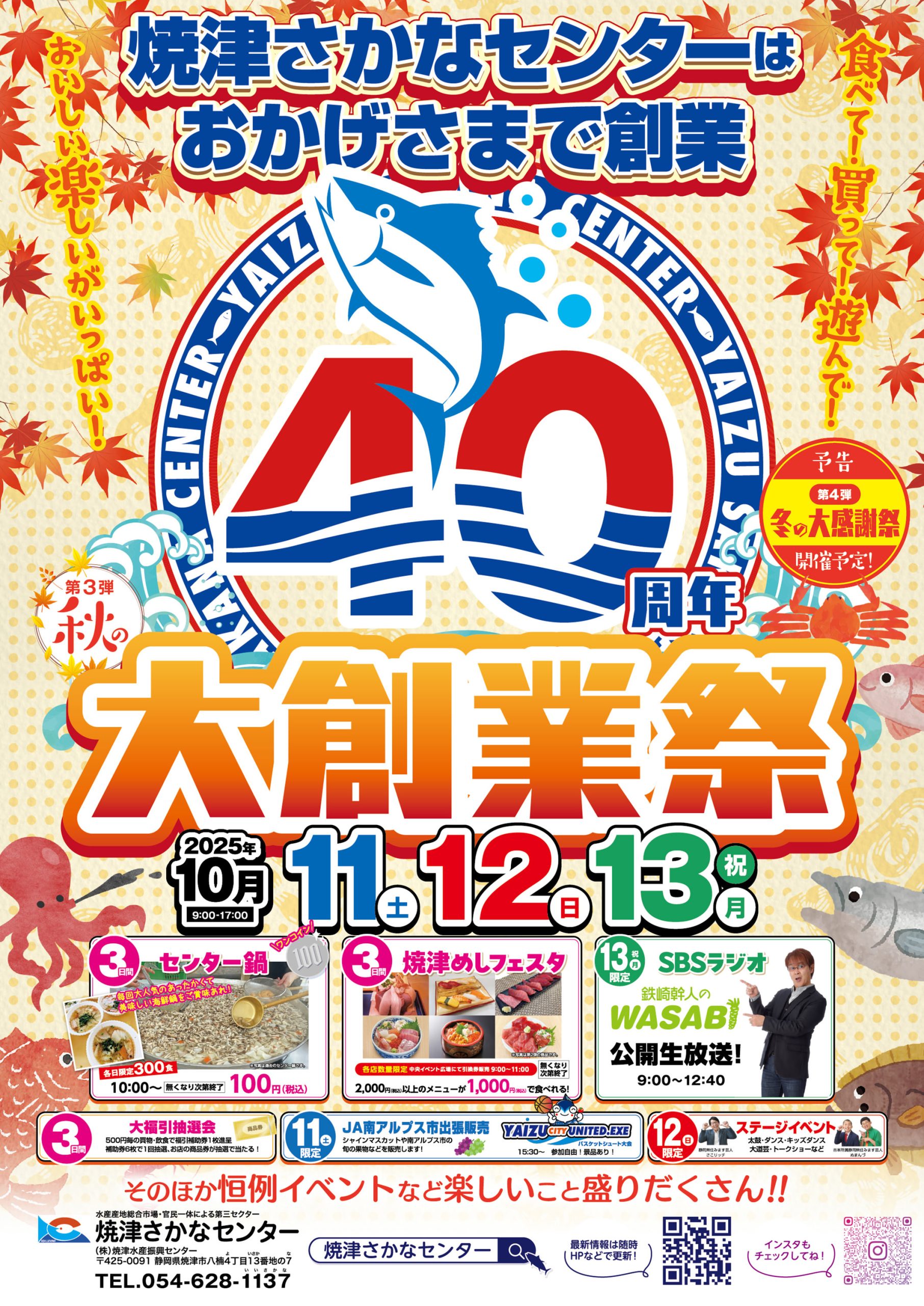 平素より焼津さかなセンターをご愛顧いただき、誠にありがとうございます。おかげさまで、当センターは今年で40周年を迎えることができました。皆さまのあたたかいご支援に、心より感謝申し上げます。