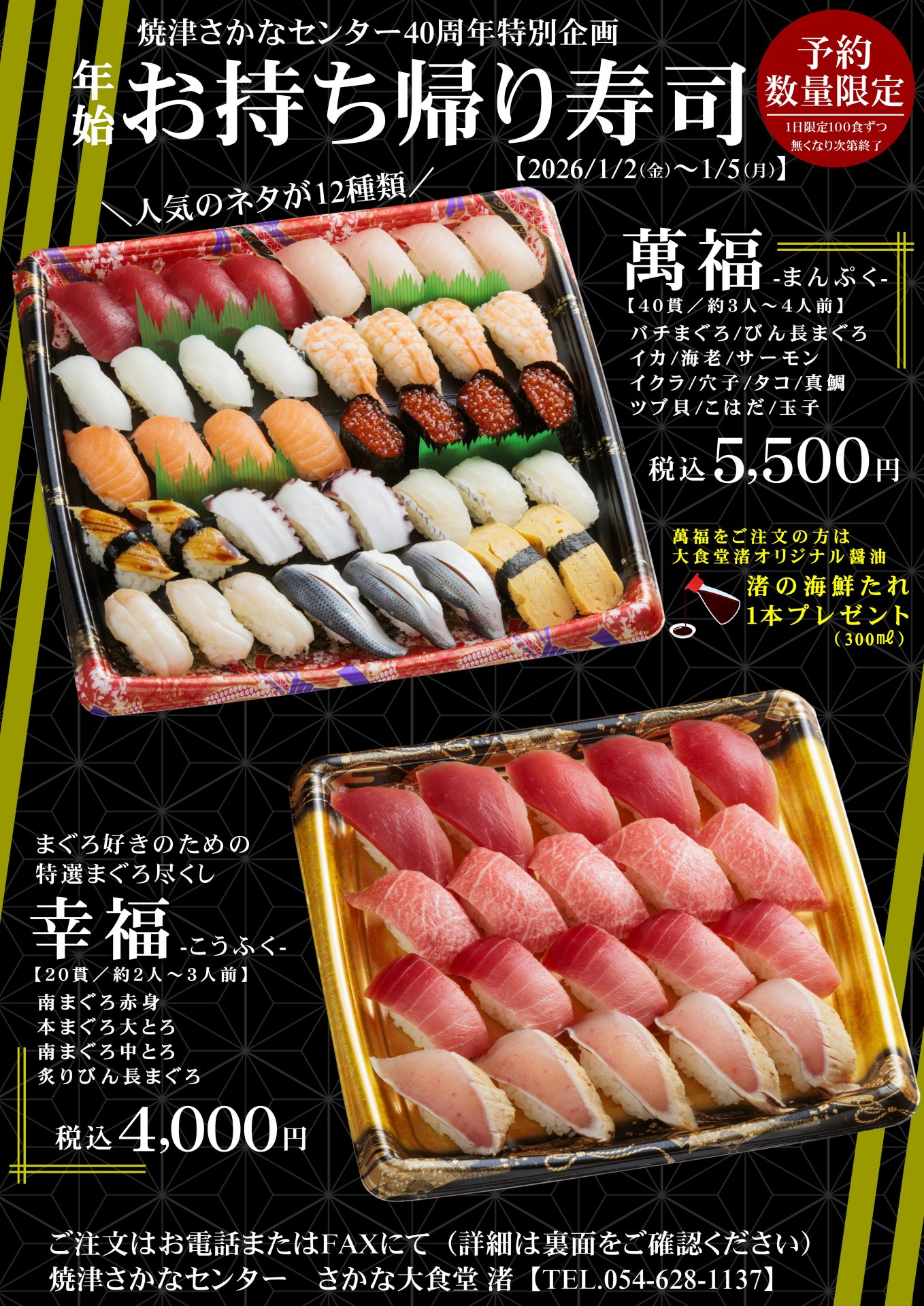 年始お持ち帰り寿司販売 *数量限定 【販売期間】2026年1月2日㈮~1月5日㈪の4日間の限定販売!!