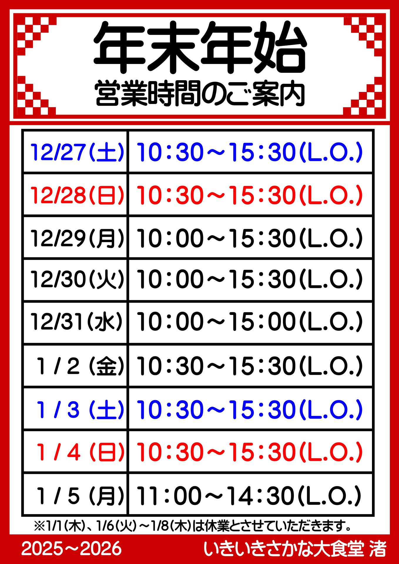 【定休日】1月1日、他設備点検による臨時休業日あり。