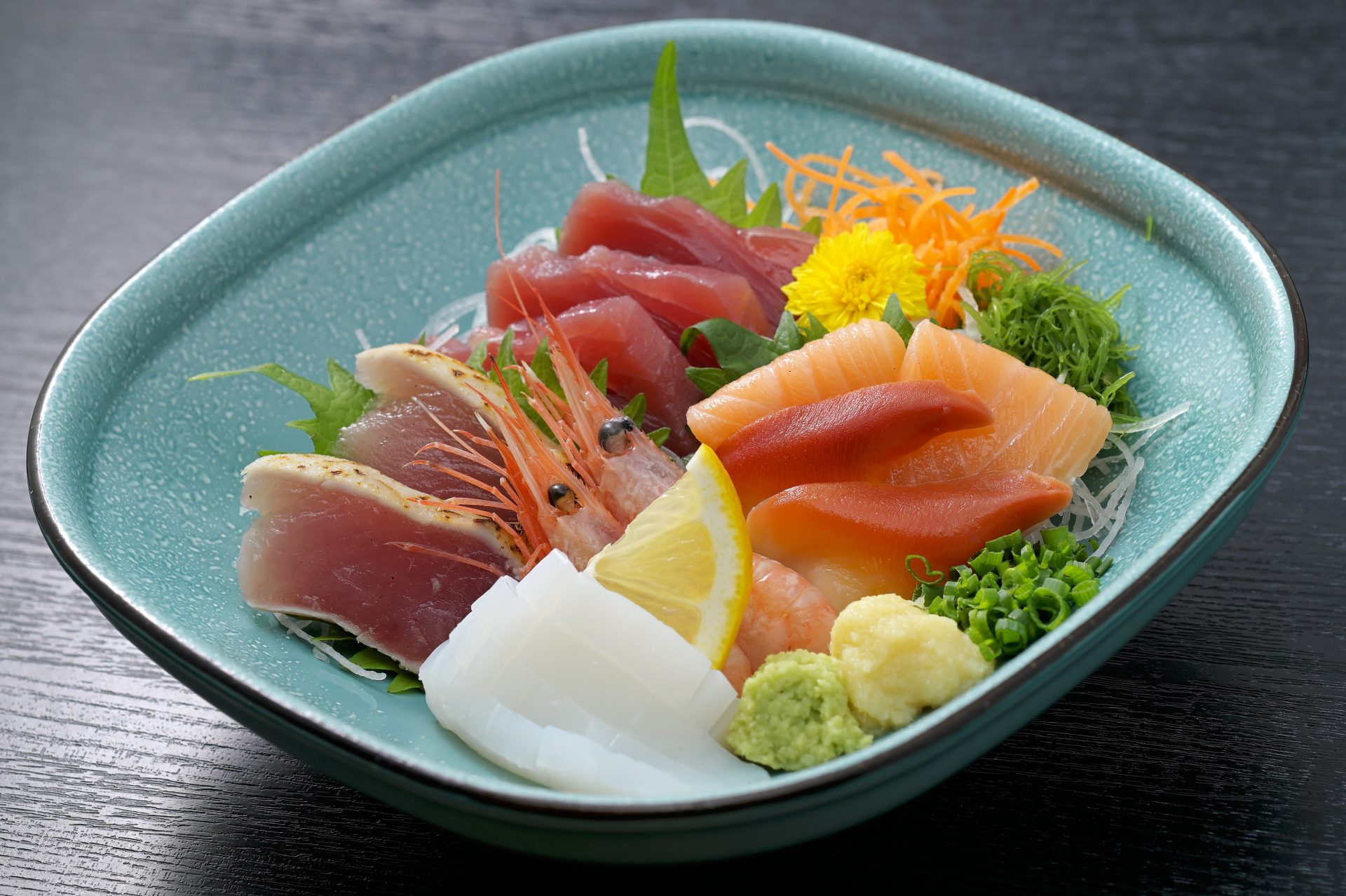 人気のお刺身を6種集めた一皿です。 各2貫以上ずつ入っているので、シェアして食べるのもおすすめです。